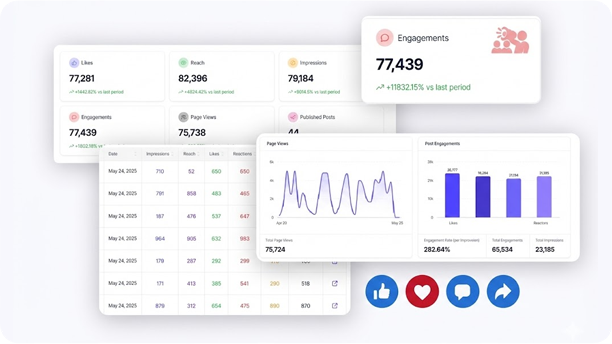 See what’s working. Improve what’s not. Stop checking insights separately on every platform. Social 360 Suite gives you a clear performance overview inside one dashboard.